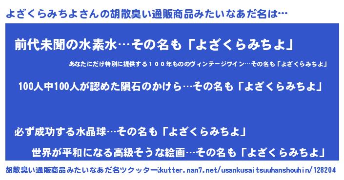 | ヘコむあだ名 | 『よざくらみちよ(遠い目)』『酢こんぶ』 |
