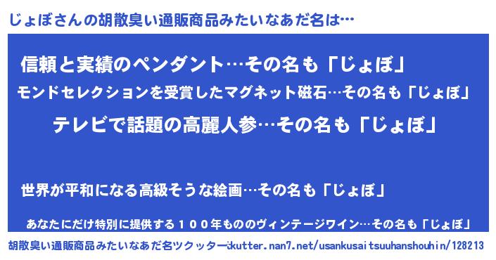 | 欧米人風あだ名 | 『ケンブリッジじょぼ』『ウサインじょぼ』 |