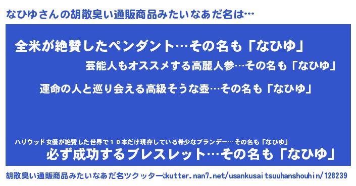 | ファンタジー風あだ名 | 『エターナルナヒユー』『ナヒフェル』 |
