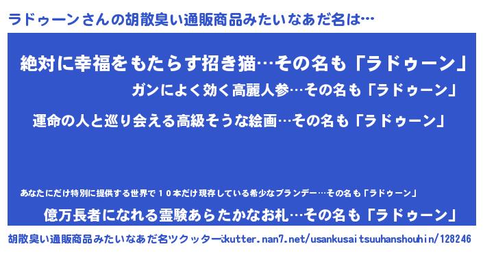 | 意味不明あだ名 | 『ラドゥーンフォーエバー』 |
