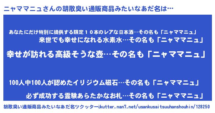 | 欧米人風あだ名 | 『ニャママニュクリステル』 |