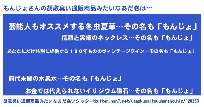 | 意味不明あだ名 | 『住所不定無職もんじょ(8歳)』 |