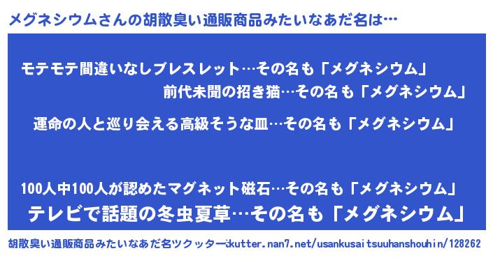 | ヒーロー風カッコイイあだ名 | 『ウルトラメグネシウムマン』 |