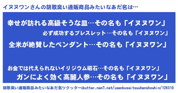 | 意味不明あだ名 | 『とにかく怪しいイヌヌワン』 |