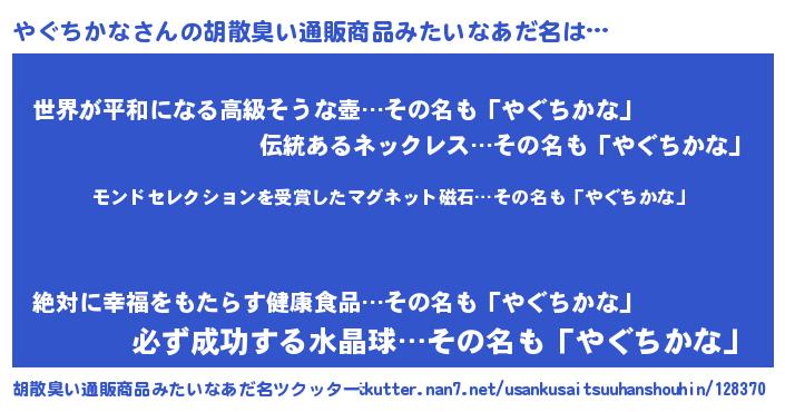 | ヒーロー風カッコイイあだ名 | 『慈愛の使者やぐちかな』『炎刃騎士ヤグ』 |