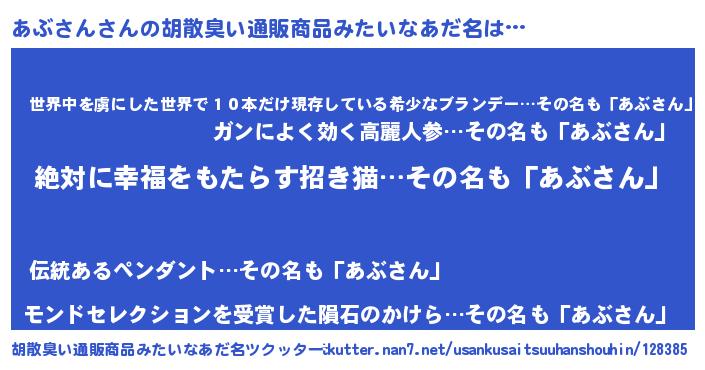 | ヘコむあだ名 | 『あぶさん(笑)』『あぶっぺ』 |