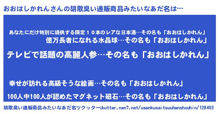 | 欧米人風あだ名 | 『ケンブリッジおおはしかれん』 |