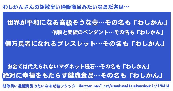 | 欧米人風あだ名 | 『マイケルわしかん』『ウサインわしかん』 |