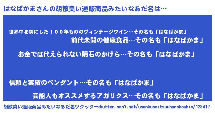 | ヘコむあだ名 | 『はなばかま(遠い目)』『はなを』 |