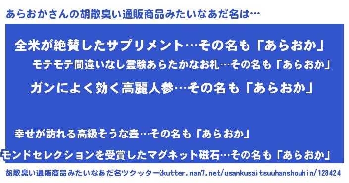 | 恥ずかしいあだ名 | 『アラオカデラックス』『アラリンリン』 |