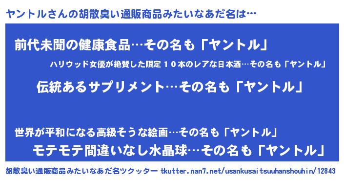 | 意味不明あだ名 | 『とにかく怪しいヤントル』 |