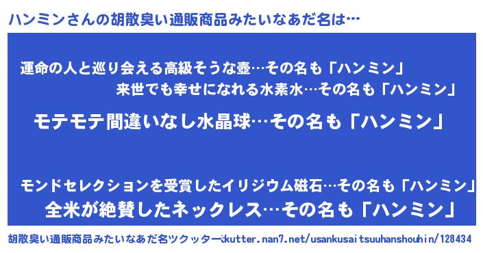 | 恥ずかしいあだ名 | 『プリティーハンミン』『ハンっちょ』 |