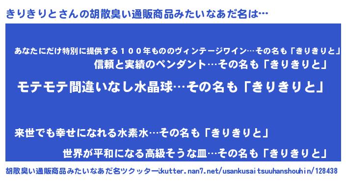 | ヘコむあだ名 | 『きりもー』『酢こんぶ』 |