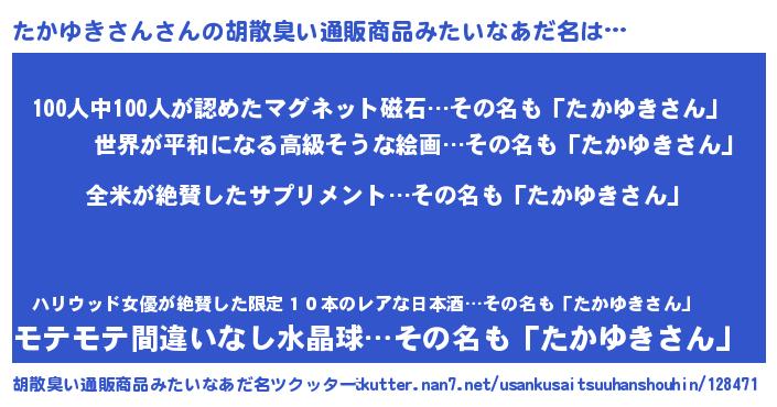 | 意味不明あだ名 | 『とにかく怪しいたかゆきさん』 |
