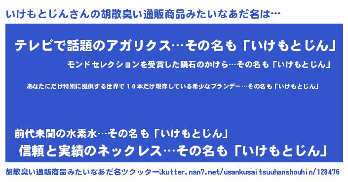 いけもとじんさんの胡散臭い通販商品みたいなあだ名をツクッター!