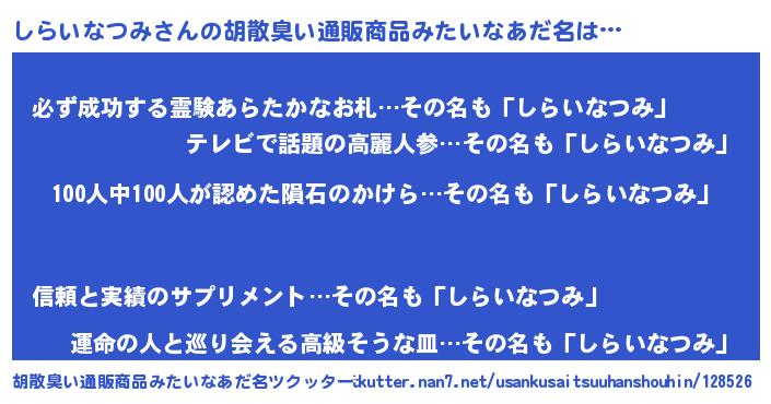 | 意味不明あだ名 | 『眠気覚ましガムしらいなつみ味』 |