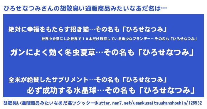 | ヘコむあだ名 | 『ひろせなつみ(遠い目)』『ひろにー』 |