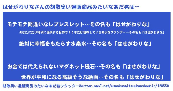 | 意味不明あだ名 | 『永久保存はせがわりな』 |