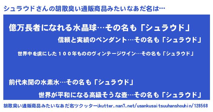 | 意味不明あだ名 | 『住所不定無職シュラウド(12歳)』 |