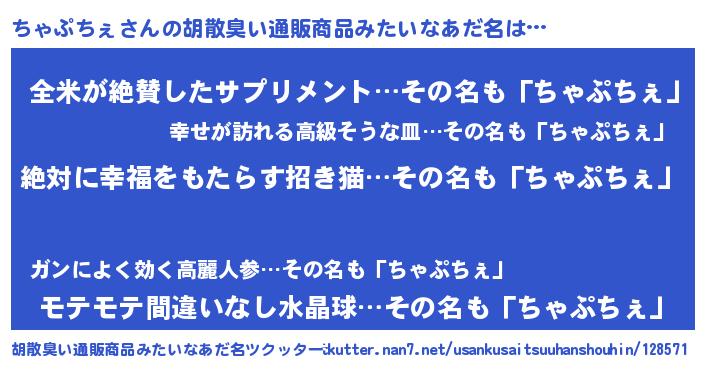 | 意味不明あだ名 | 『永久保存ちゃぷちぇ』『自称ちゃぷちぇ』 |