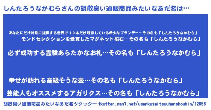 | 肩書あだ名 | 『しんたろうなかむら御曹司』 |