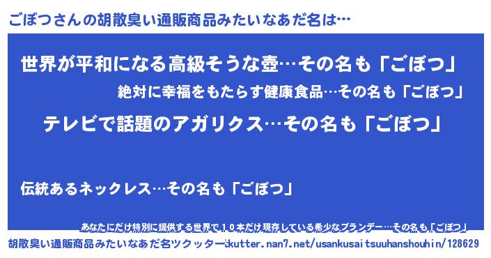 | ヒーロー風カッコイイあだ名 | 『サイバー戦士ゴボツ』『仮面ゴボダー』 |
