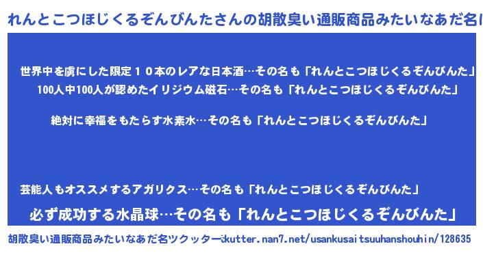 | 意味不明あだ名 | 『永久保存れんとこつほじくるぞんびんた』 |