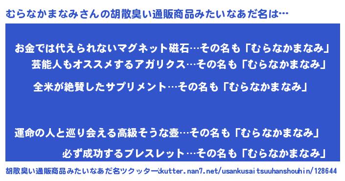 | ポケモン風あだ名 | 『ヒムラナカマナミ』『ムラゴンZ』 |