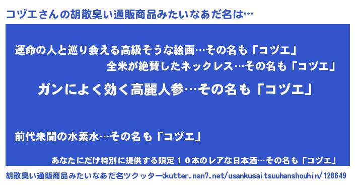 | 意味不明あだ名 | 『自称コヅエ』『コヅエフォーエバー』 |
