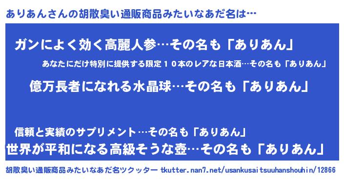| 意味不明あだ名 | 『ペロリンありあん』『自称ありあん』 |