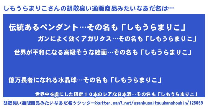 | 意味不明あだ名 | 『しもうらまりこフォーエバー』 |