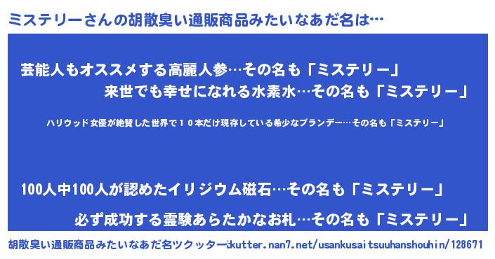| 意味不明あだ名 | 『住所不定無職ミステリー(86歳)』 |