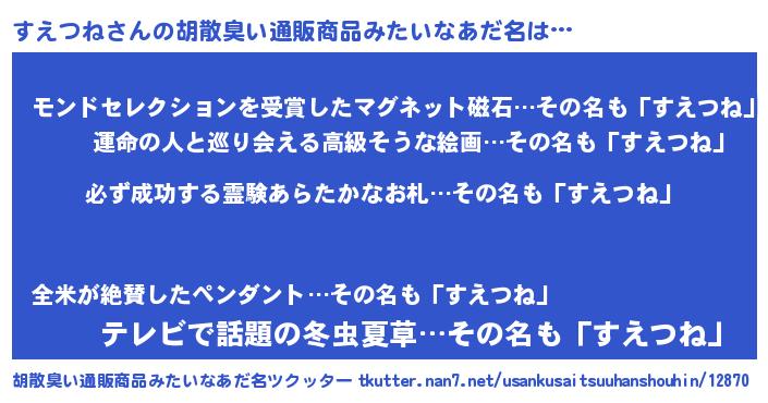 | 意味不明あだ名 | 『ペロリンすえつね』『自称すえつね』 |