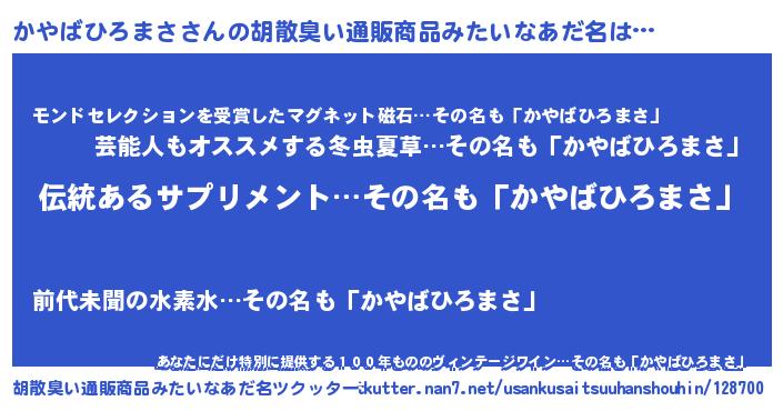 | ヘコむあだ名 | 『かや太郎』『かやばひろまさ(小並感)』 |