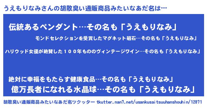 | 肩書あだ名 | 『うえもりなみマネージャー』 |