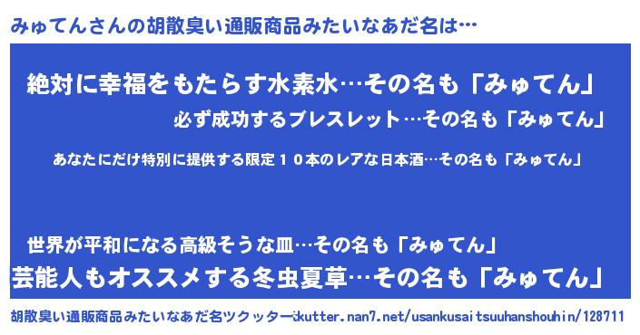 | 意味不明あだ名 | 『住所不定無職みゅてん(39歳)』 |