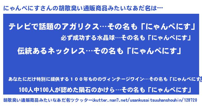 | 意味不明あだ名 | 『とにかく怪しいにゃんぺにす』 |