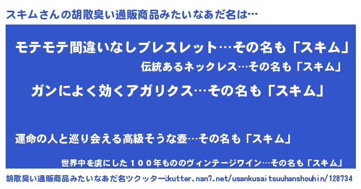| 恥ずかしいあだ名 | 『スキムデラックス』『プリティースキム』 |
