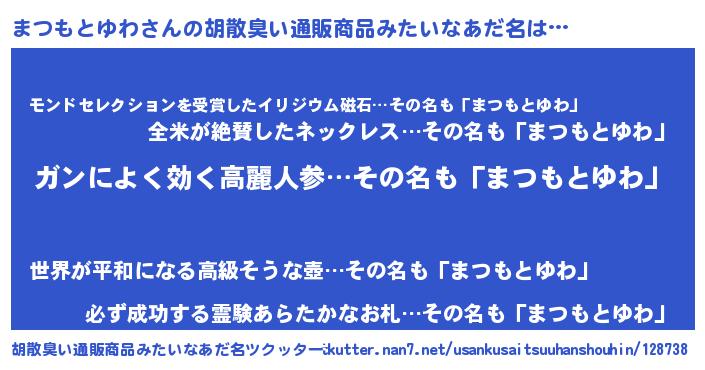 | 肩書あだ名 | 『まつもとゆわ閣下』『まつもとゆわ助手』 |