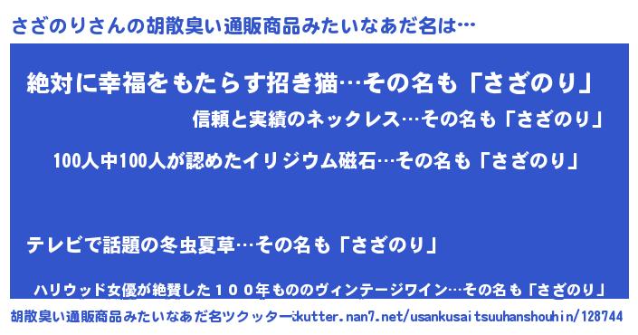 | ヘコむあだ名 | 『さざのり(笑)』『さざお』『牛乳』 |