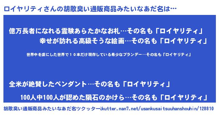 | 意味不明あだ名 | 『住所不定無職ロイヤリティ(79歳)』 |