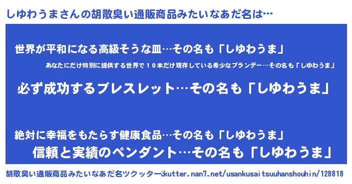 | ヘコむあだ名 | 『しゆにー』『酢こんぶ』『しゆっぺ』 |