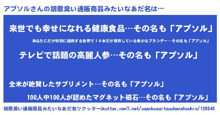 | ヘコむあだ名 | 『アプソル(笑)』『アプっちょ』 |