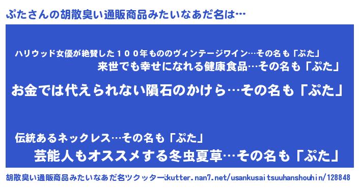 | ヘコむあだ名 | 『ぷた(遠い目)』『ぷたを』 |