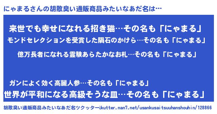 | ヘコむあだ名 | 『にゃっふぃ~』『にゃまる(小並感)』 |