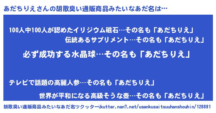 | 肩書あだ名 | 『あだちりえ店長』『あだちりえ少将』 |