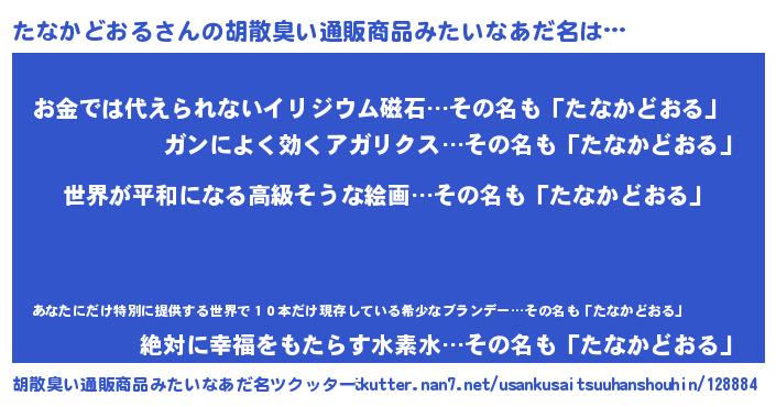 | 男性向けラノベタイトル風あだ名 | 『やはりたなかどおるの青春ラブコメはまちがっている 』 |