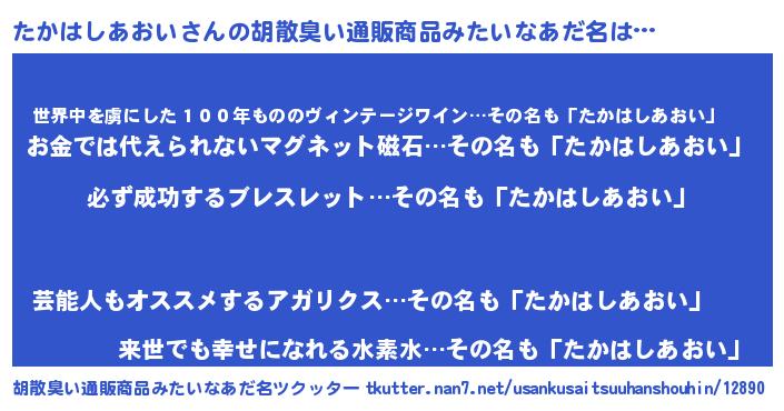 | ヘコむあだ名 | 『たかにー』『たかはしあおい(小並感)』 |