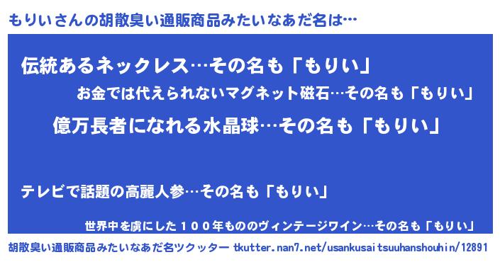 | ヘコむあだ名 | 『もりにゅー』『もり太郎』 |