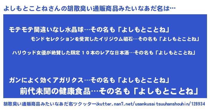| 恥ずかしいあだ名 | 『プリティーよしもとことね』『よしちん』 |